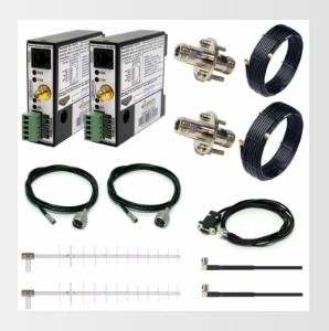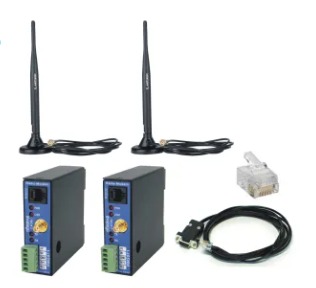 O KIT Rádio Enlace 2.4 GHz reúne os equipamento e materiais necessários para estabelecer a comunicação serial entre dois pontos em chão de fábrica. O padrão de comunicação pode ser em RS232 ou RS485. A velocidade serial admitida é de 1.200 a 115.200 bps. O alcance do enlace é de até 500 m se houver visada entre os dois pontos. Exemplo de aplicação: comunicação entre CLPs.