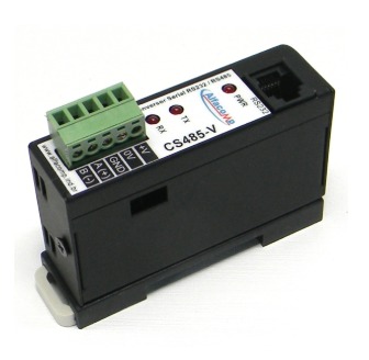 O conversor serial CS485-V consiste em uma solução de alto desempenho e baixo custo para conversão do padrão serial RS232 em RS485. De formato adequado para montagem em painéis elétricos de automação industrial, é alojado em gabinete metálico para encaixe em trilho DIN e pode ser alimentado por tensão CC de 10 a 30V. O conversor suporta taxas de comunicação de 1200 a 57600 bps sem necessidade de ajustes. O padrão RS485 permite a comunicação de até 32 dispositivos em distâncias de até 1200 metros.