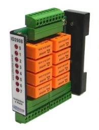 O isolador a relé ID2908 constitui um isolador a relê para 8 saídas digitais de 24V. As bobinas dos relés tem uma ligação em comum no borne 0V. O módulo possui 8 saídas independentes e isoladas; S0 até S7. Ocupando apenas 23 mm no trilho DIN, o módulo funciona como borneira, simplificando a montagem de quadros de comando e economizando espaço. 8 LEDs indicam o estado dos relés. As conexões são por bornes destacáveis, facilitando a troca rápida de módulos.