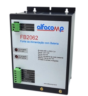O módulo Alfacomp FB2062 constitui uma fonte de alimentação chaveada especialmente desenvolvida para alimentar um CLP e um rádio modem. Dotado de bateria interna de 12V/7Ah, fornece em suas saídas as tensões de 24V para o CLP e 12V para o rádio. Enquanto a alimentação está presente na entrada CA, o módulo mantém a carga na bateria. Quando acontece a interrupção da energia da rede, a bateria sustenta o fornecimento nas saídas de 24V e 12V. Ideal para telemetria.