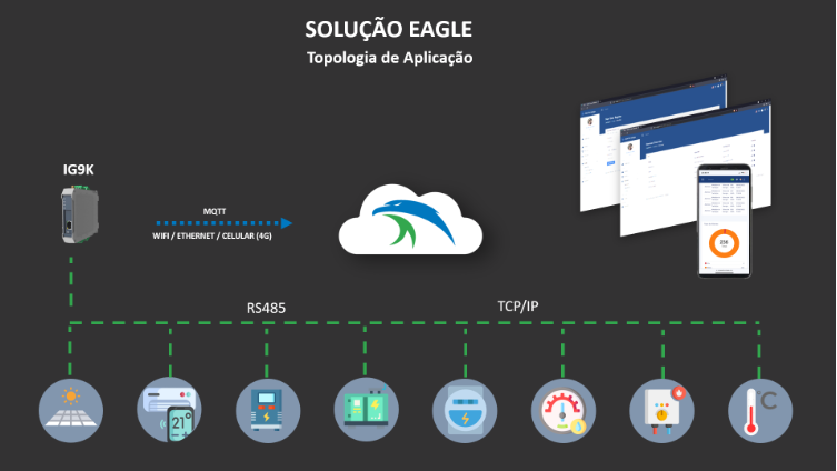 É um conjunto de soluções de hardware e software com a tecnologia Internet das Coisas (IoT) e foco na Gestão de Utilidades e Gestão de Ativos. A Plataforma Eagle IoT industrial foi desenvolvida para: