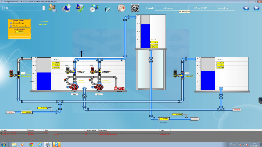 Esse era o caso do sistema implantado no SAAE de Sorocaba onde o sistema era composto por controladores industriais e software supervisório proprietários ou obsoletos.