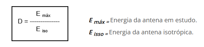É a relação entre o campo irradiado pela antena na direção de máxima irradiação e o campo que seria gerado por uma antena isotrópica que recebesse a mesma potência. A diretividade de uma antena define sua capacidade de concentrar a energia irradiada numa determinada direção.
