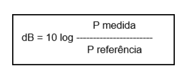 Exemplo: Seja uma potência de 0,001 mW, sua intensidade dada em dBm é calculada como: