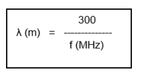Comprimento de onda: distância percorrida pela onda durante um ciclo. É definido pela velocidade de propagação dividida pela frequência. Ver fórmula ao lado.