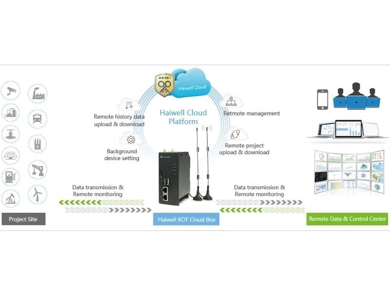 A gerência do dispositivo pode ser feita igualmente via nuvem Haiwell Cloud. O Cloud Box permite monitorar e controlar processos industriais por intermédio da Haiwell Cloud (comunicação via nuvem). O dispositivo comunica com diversos equipamentos de controle industriais por meio dos diversos drivers de comunicação nativos. Para muitas aplicações, o Cloud Box irá substituir, com vantagens, um computador rodando um software supervisório.