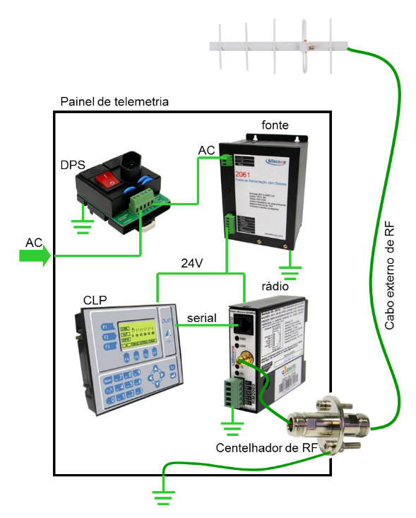 O CLP deve ser sempre montado em quadros de comando, em nosso caso é o próprio painel de telemetria, devidamente aterrados e protegidos contra surtos e instalados em locais ventilados e o mais distante dos vapores corrosivos de gases como o cloro utilizado no tratamento d’água.