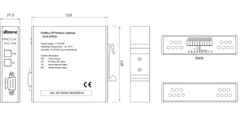 O gateway ALFA-DPM01 é um conversor de protocolo Modbus-RTU/ASCII para PROFIBUS-DP.