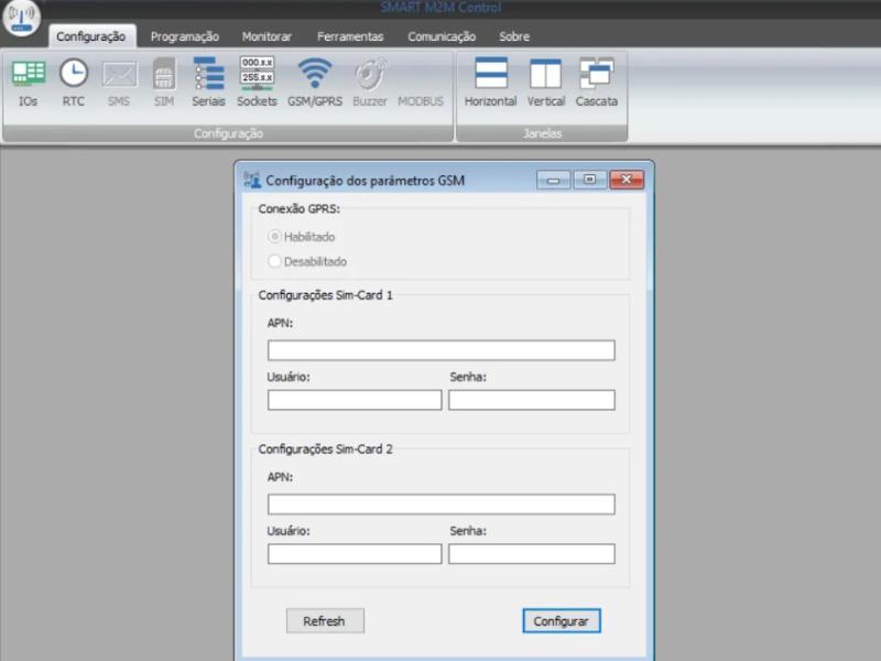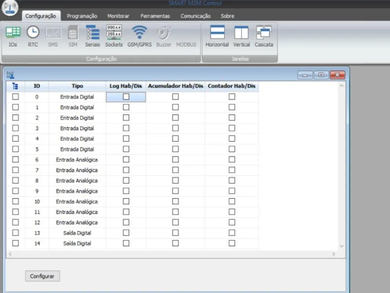 Os ajustes de parâmetros do DL2016 são realizados através do software Smart M2M Control. Através deste software é possível configurar e monitorar completamente o funcionamento do seu datal logger. Faça o download no site www.alfacomp.net , na página do produto ou secção de downloads.