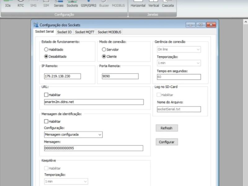 Cada socket pode ser configurado de forma independente. Os parâmetros a serem configurados são os mesmos para todos os sockets, exceto o Modbus que possui campo para o endereço RTU.