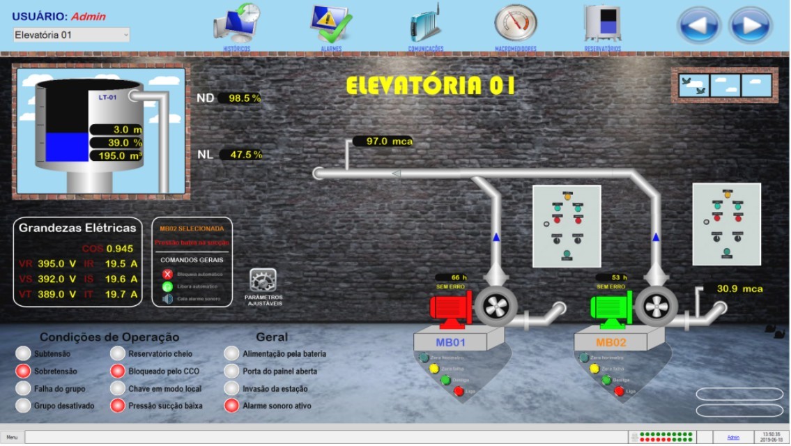 Lógica de funcionamento de reservatórios e elevatórias de água tratada
