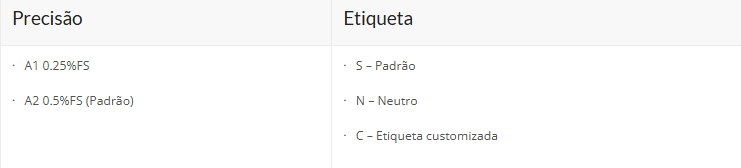 Tipo | · G – Gauge · A – Absoluto |