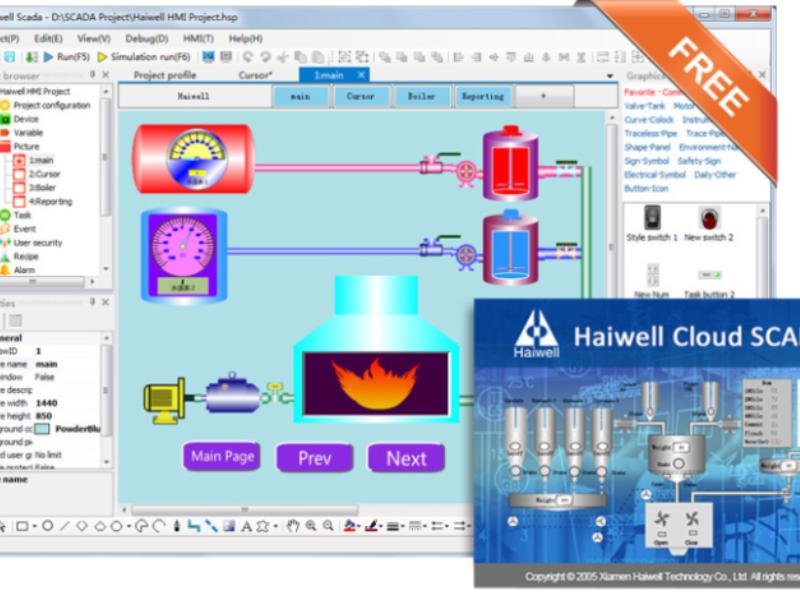 O software Haiwell Cloud SCADA é baseado em .NET Framework e permite a monitoração e controle de processos industriais. Também é o software utilizado para configurar a linha de IHMs (Interfaces Homem-Máquina) da Haiwell.