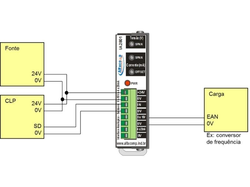IA2801 – Conversor analógico de pulsos para 0 a 10V e 4 a 20mA
