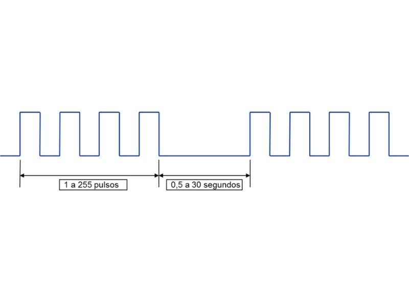 Entrada | Trem de pulsos (1 a 255 pulsos com amplitude de 24Vpp) |
