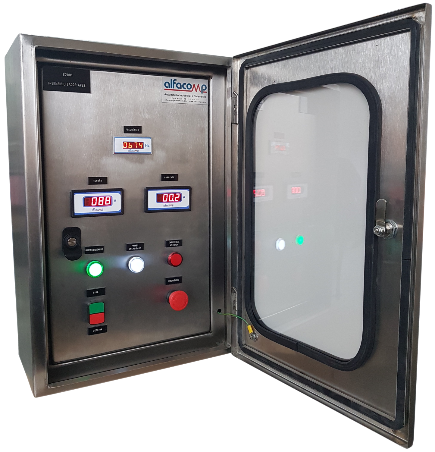 O Insensibilizador Eletrônico de Aves IE2001 constitui a mais moderna e eficiente solução para a insensibilização eletrônica de frangos no momento do abate. Contando com resultados comprovados, o IE2001 demonstrou resultados superiores na qualidade da insensibilização, assim como na eficiência da sangria. A insensibilização elétrica tem como objetivo provocar no animal um estado cerebral de perda dos sentidos, contudo sem a perda das funções vitais. Uma insensibilização de boa qualidade resulta em um estado de atordoamento em que o animal fica imóvel, e após alguns segundos, se não for abatido, recobra os movimentos sem sequelas.