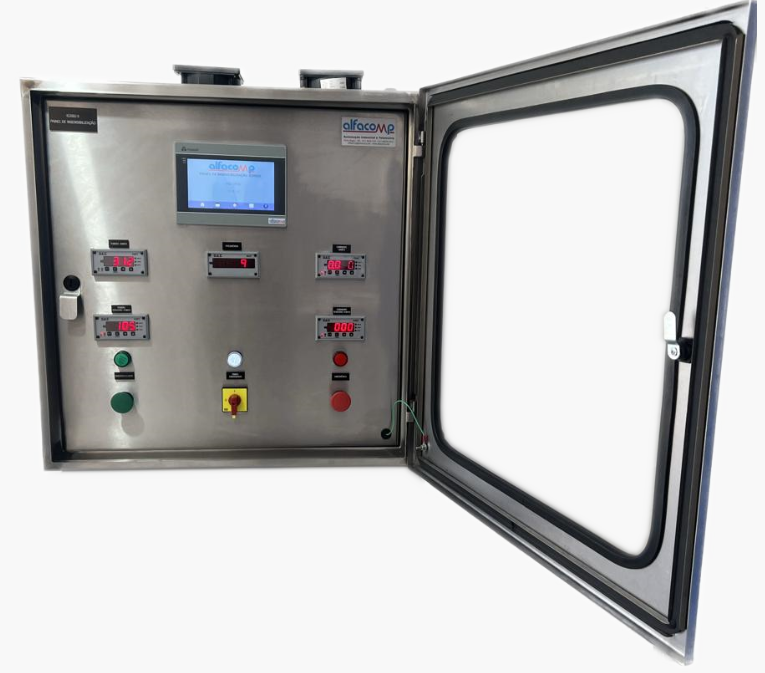 Segurança e proteção elétrica | Entrada geral protegida com DR 25A / 30mA. Alimentação do CLP e IHM protegida com DPS Alfacomp SW3300 |