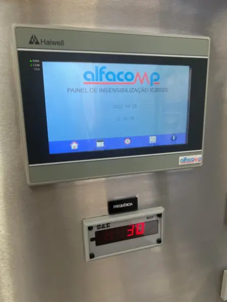 O insensibilizador IE2002-S foi desenvolvido para atender as novas exigências de abate da portaria 365. Todos os dados de tensão, corrente, frequência e demais parâmetros de cada insensibilização são registrados no Logger do equipamento para fins de rastreabilidade da produção.