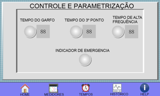 - Tempos – Tela onde o usuário configura os tempos de acionamento dos instrumentos.