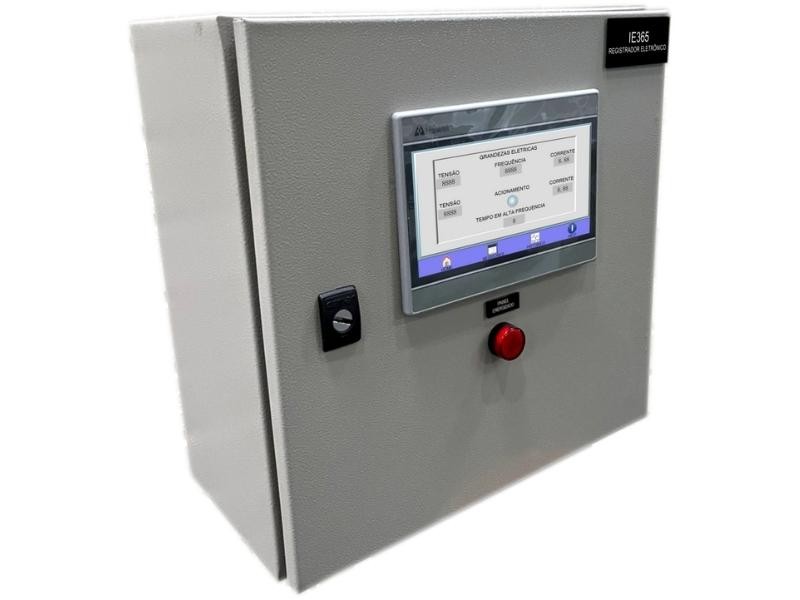 O painel é composto por interfaces de leitura Modbus, IHM, medidores de corrente / tensão / frequência e fonte de alimentação 24V. O registro e exportação dos dados é feito através da IHM.