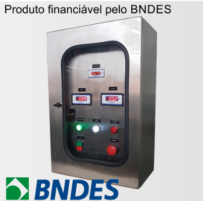 Um CLP com IHM controlam o sequenciamento do funcionamento do equipamento.
