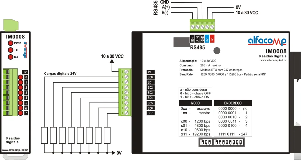 Interface Modbus com 8 saídas digitais – IM0008