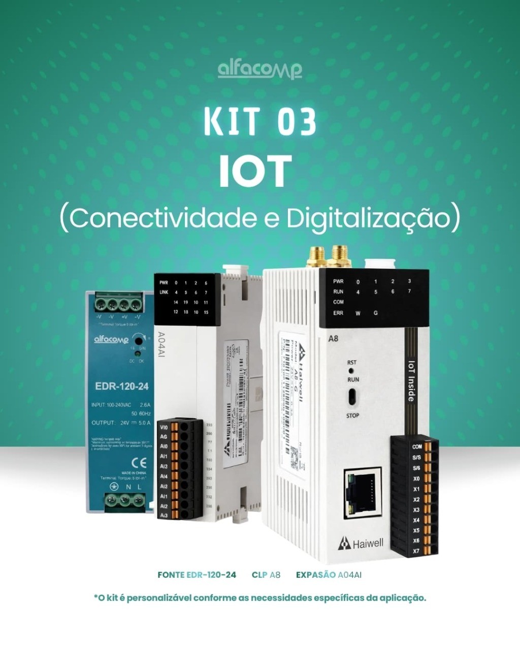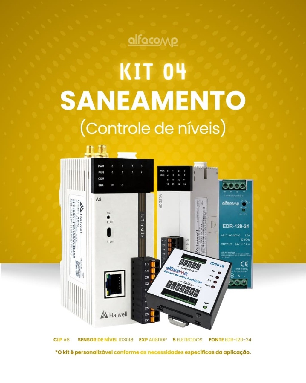 A Alfacomp disponibiliza quatro kits Haiwell pré-configurados, cada um pensado para um perfil de aplicação industrial específico. De sistemas SCADA completos a soluções dedicadas para saneamento, os kits reúnem hardware, software e acessórios para colocar sua automação em operação com rapidez e confiança.