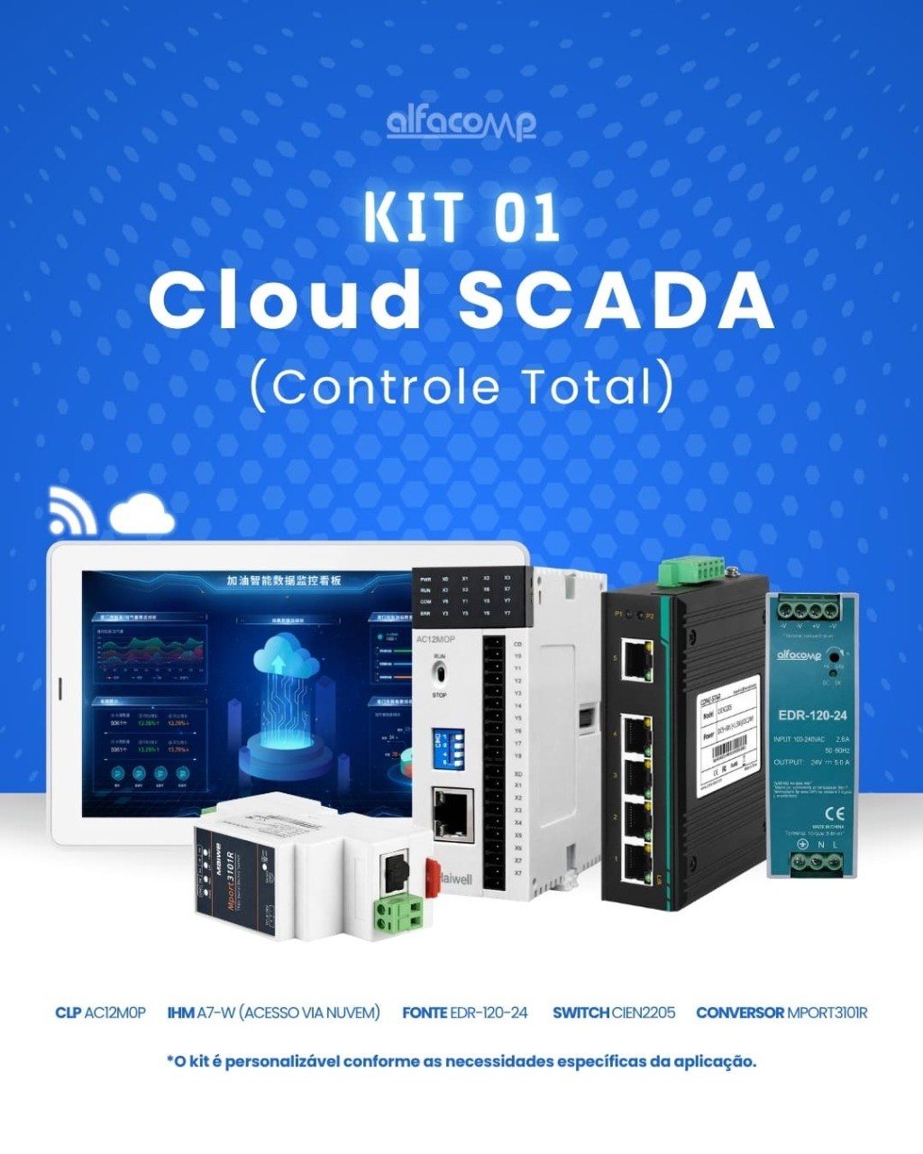 Os Kits Alfacomp foram selecionados e validados para acelerar a implantação de projetos de automação industrial. Seja para SCADA completo, telemetria remota, IoT ou controle de nível, há um kit pronto para o seu desafio.