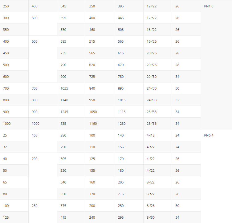 Pressão da tubulação: 0,6, 1,0, 1,6, 2,5, 4,0, 6,4 MPa (ou especificado pelo cliente)
