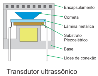 Este sensor converterá energia elétrica em ondas de ultrassom. Cristais piezoelétricos são usados para esse processo de conversão.