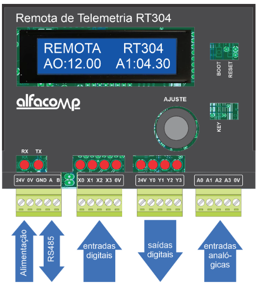 - Alimentação: 10 a 30VCC;