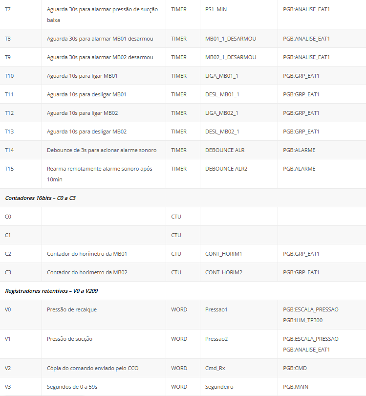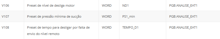 Desbloqueio – A elevatória é ativada fazendo a posição 0 da tabela de setpoints igual a zero. Isto permite que o CLP opere automaticamente.