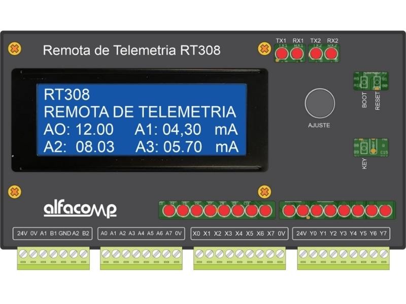 1 | RT308 | Remota de telemetria com 8ED, 8SD, 8 EA, 2 RS485, Display 4×20 |