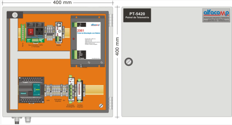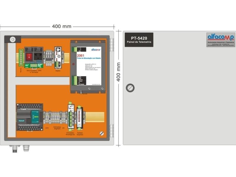 O painel de telemetria PT5420 é baseada no CLP Haiwell C16SOP. Os quadros apresentam alto índice de integração, modularidade, facilidade de manutenção, CLP de mercado com protocolo MODBUS RTU mestre e escravo, resultando em montagens de alto desempenho e baixo custo. Os equipamentos destinam-se ao uso em instalações de saneamento tais como elevatórias de água e esgoto, pontos de macromedição.