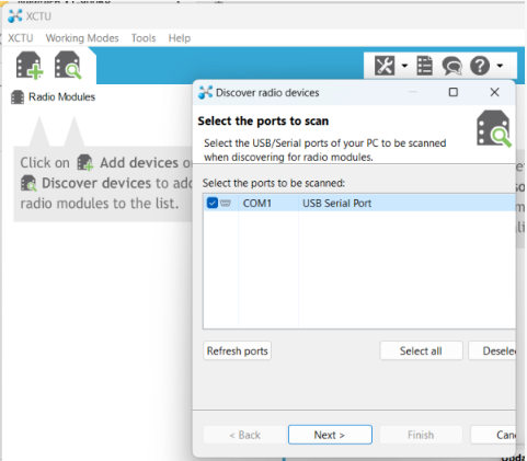 - Clique no rádio selecionado para que o XCTU leia sua configuração;