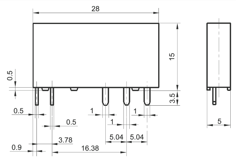 • Isolação de 4000 V entre bobina e contatos;