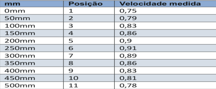 Tabela 1 – Representação das Velocidades em diferentes pontos do tubo