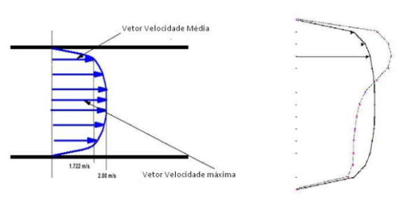 A figura acima ilustra bem a diferença que podemos encontrar nos perfis de velocidade.