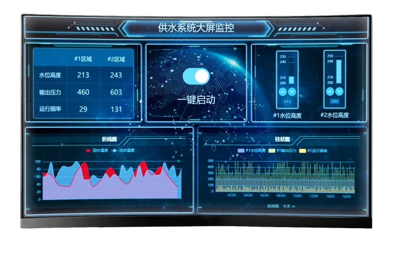 Os dados do equipamento terminal podem ser acessados rapidamente em telas grandes e projetos de projeto, e imagens de equipamentos, dados em tempo real, dados históricos, imagens de câmeras, dados de alarme, etc.