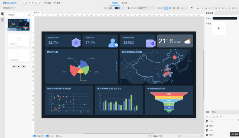 Com a configuração do Haiwell Web, os engenheiros não precisam ter habilidades de design ou fundamentos técnicos. Eles podem construir rapidamente uma grande tela de dados profissional, bonita e interessante por meio de simples arrastar e soltar de elementos gráficos, pintura de tema e interação de vinculação variáve. Ao mesmo tempo, aumenta o poder de sua própria marca e atende às necessidades dos usuários de visualização e personalização de dados.
