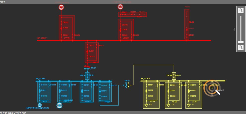 Usando como base o modelo elétrico, esse algoritmo permite a animação automática dos unifilares dispensando a necessidade de programação. O algoritmo identifica os diferentes níveis de tensão da subestação através de cores customizadas e também sinaliza os trechos energizados e desenergizados.