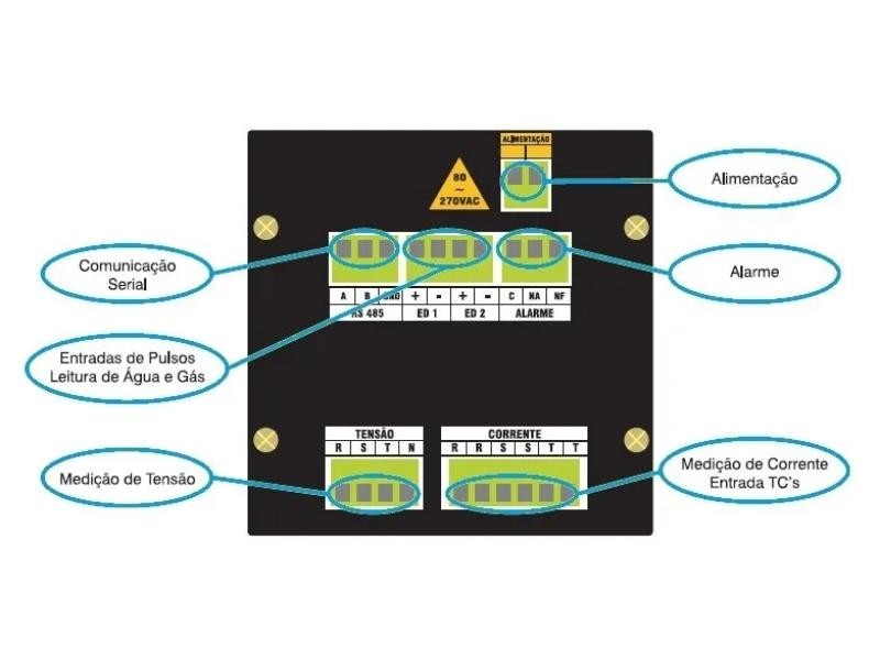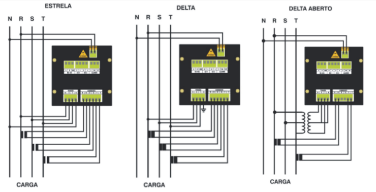 Tensão: Valor nominal da tensão fase-neutro da medição. Não requer programação, pois é lido diretamente da rede. Os valores podem ser 127, 220 ou 254 Vac.