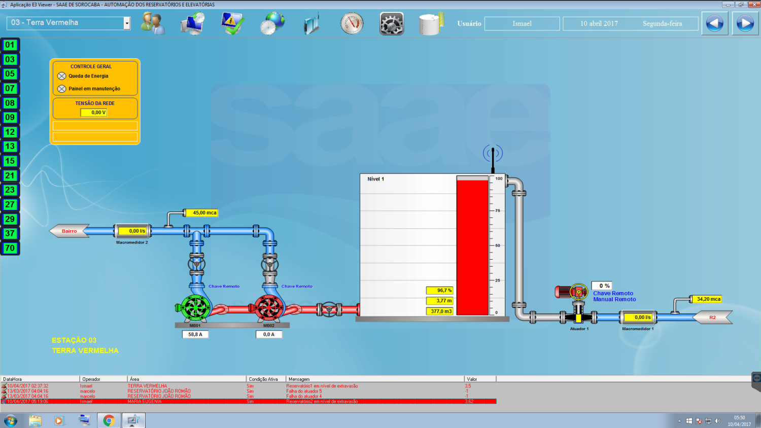 As telas de elevatória são funcionalmente semelhantes à tela abaixo. Permitem visualizar a atuar sobre o funcionamento da elevatória sendo mostrada...