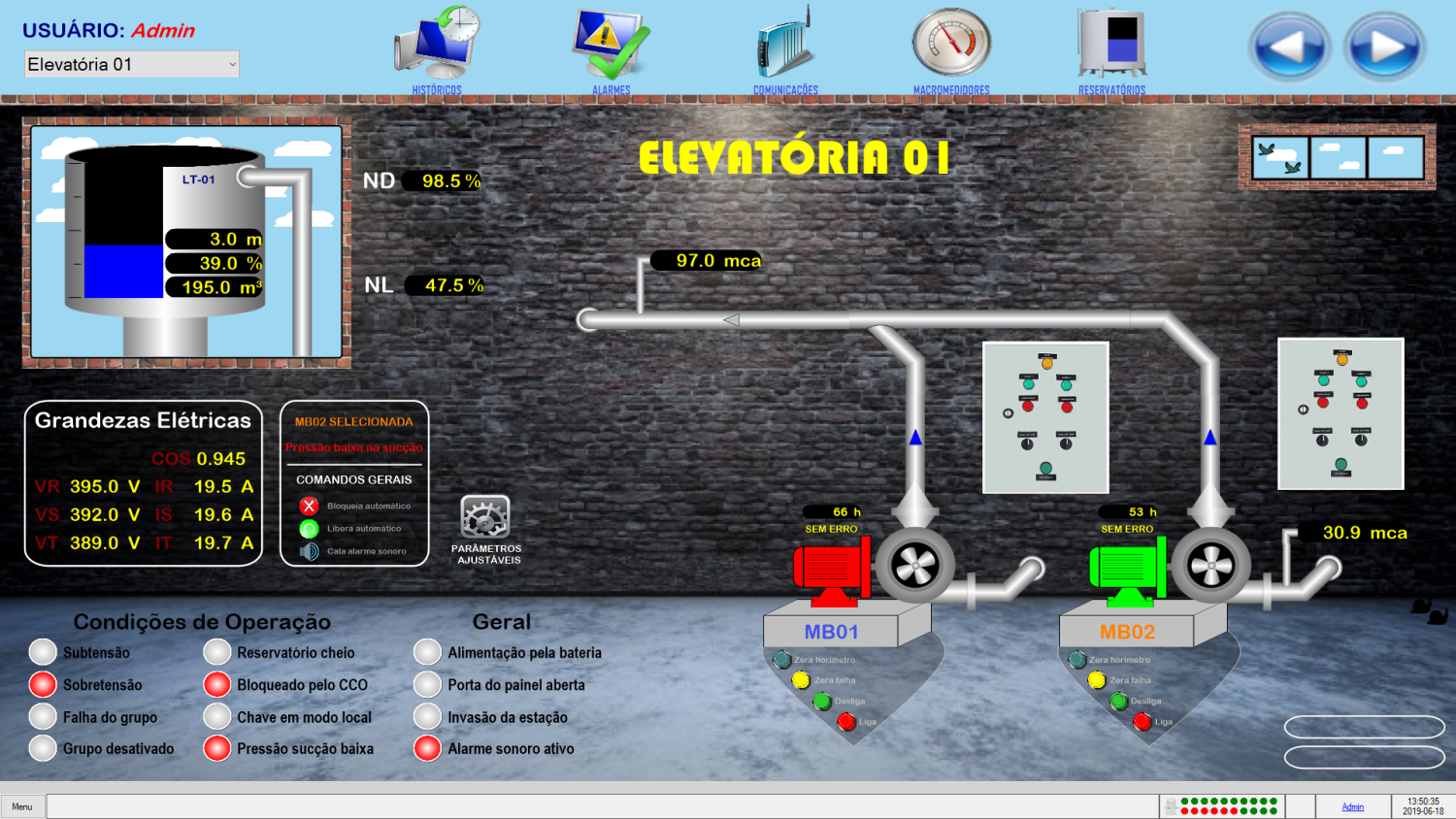 Projeto completo de automação e telemetria de uma estação elevatória de água tratada com dois grupos de moto bombas.