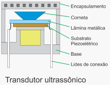 Este sensor converterá energia elétrica em ondas de ultrassom. Cristais piezoelétricos são usados para esse processo de conversão.