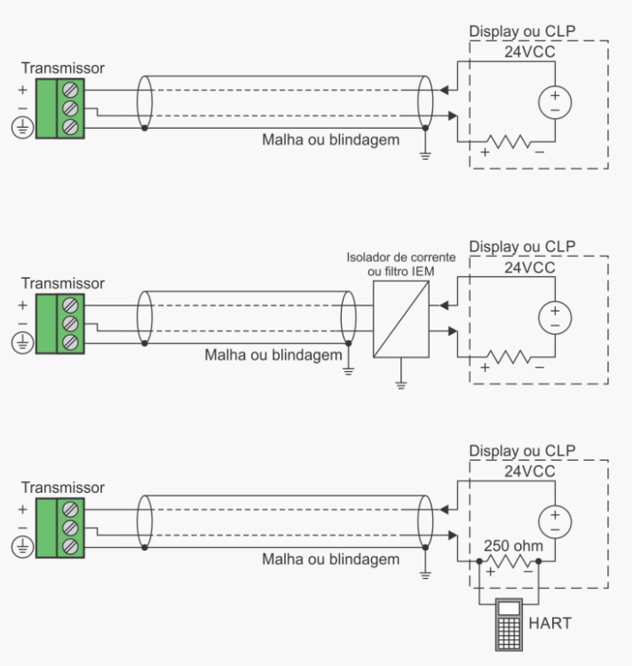 O transmissor ultrassônico de nível utiliza sinais eletrônicos de baixa amplitude e, por isso, é necessário um bom aterramento. O CLP conectado ao instrumento deve estar afastado de inversores de frequência e de motores de alta potência para evitar interferências eletromagnéticas.