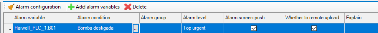 Vamos editar o “alarm condition” para bomba desligada, que irá indicar de forma clara o que houve com a variável.