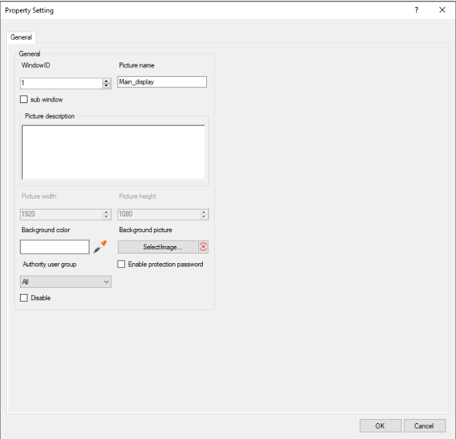 Em background Picture vamos adicionar uma imagem de fundo selecionando do PC, e depois vamos alterar o Picture name para Tela_Principal e clicamos em ok.