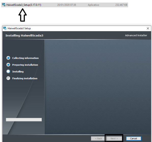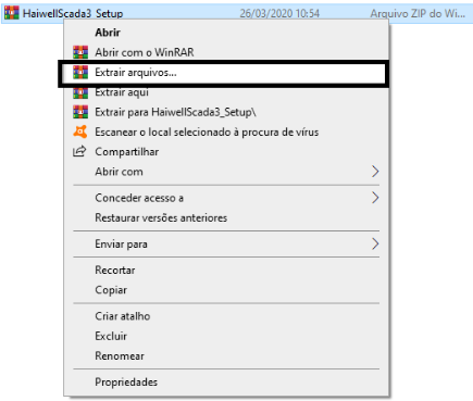 Feita a extração do arquivo na mesma pasta, você irá identificar o executável HaiwellSCADA3_Setup(3.X.X.XX). De um duplo clique no arquivo e inicie a instalação. Vá clicando em Next até finalizar.