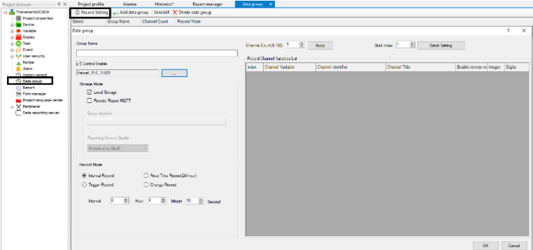 Neste capítulo veremos como criar e visualizar um histórico. Vamos no Project browser > data group.